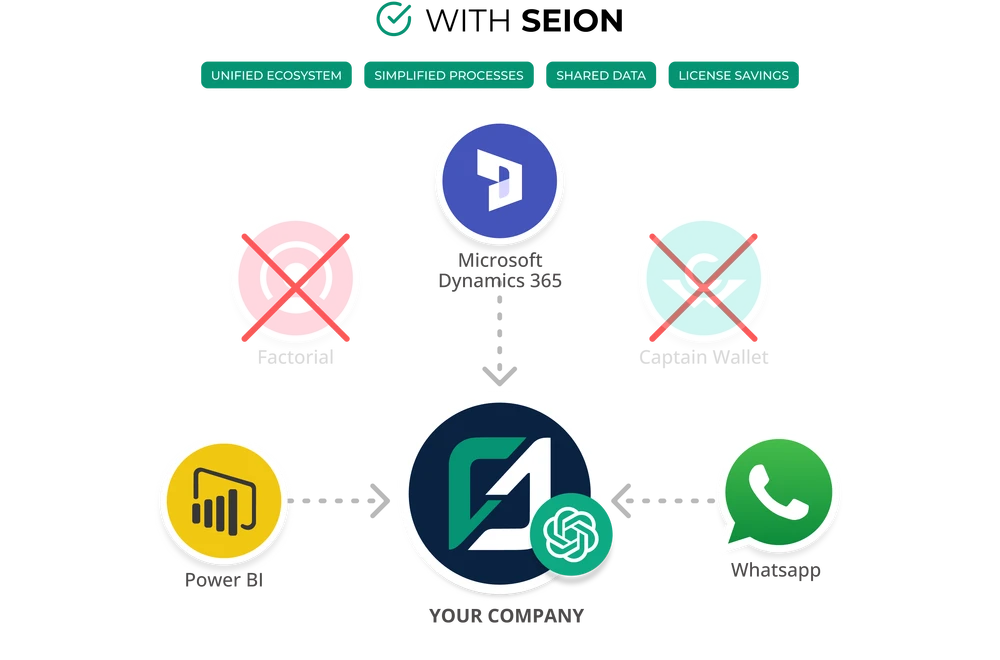 SEION integrates ERP, CRM, HR, and all your tools into a single intelligent central database.